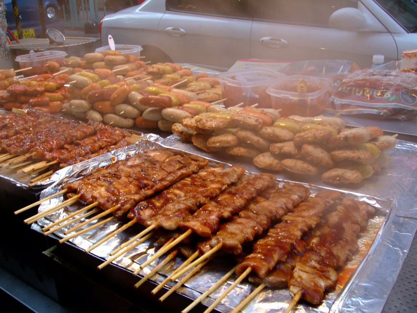天氣很冷,我們邊影燈飾邊買小食,這串雞肉不錯呢!